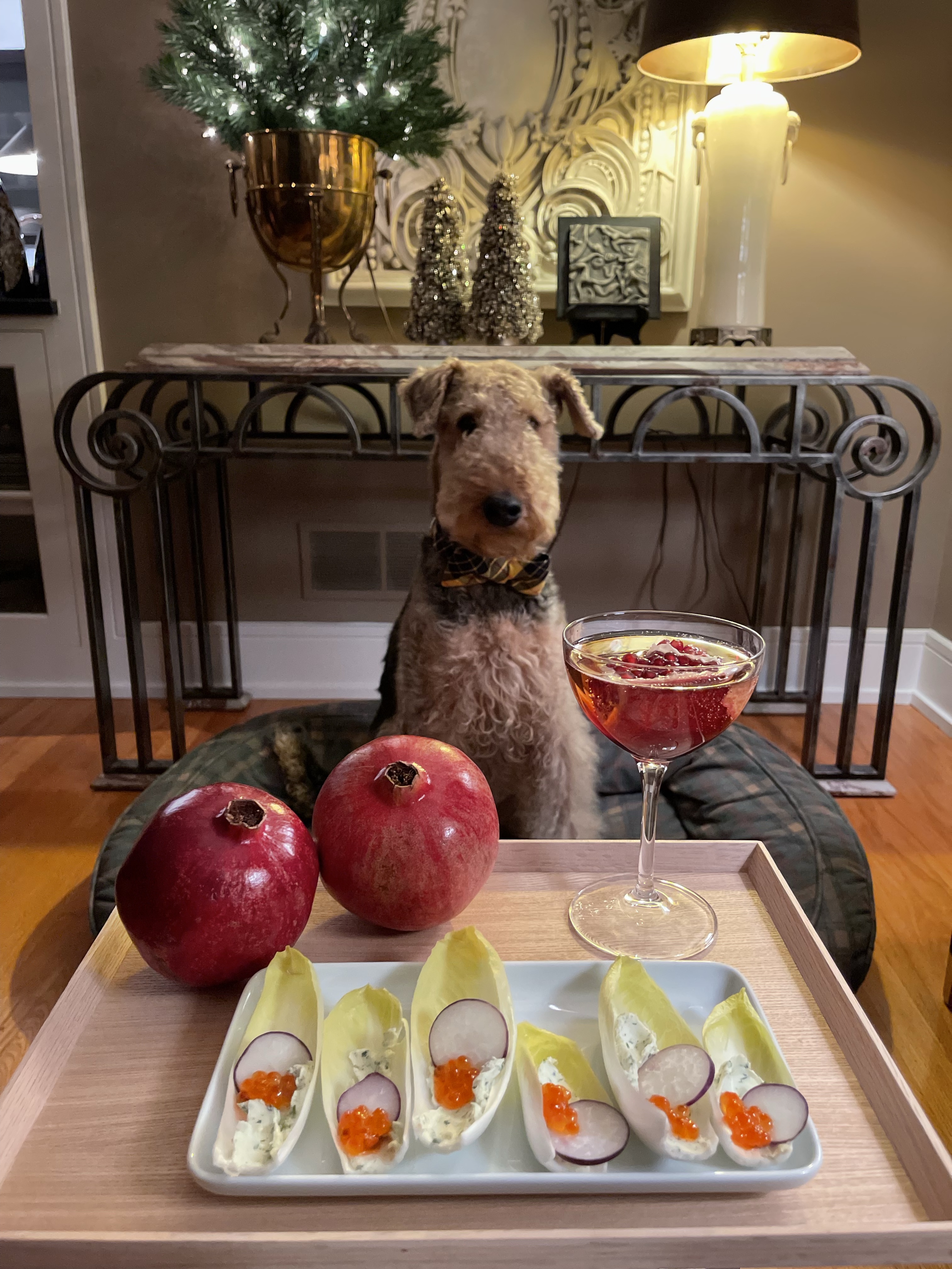 It’s not a party until someone pops the bubbly! Here I am enjoying this refreshing fizzy cocktail with some crisp endive hors d’oeuvres. Click here to get this scrumptious appetizer recipe.