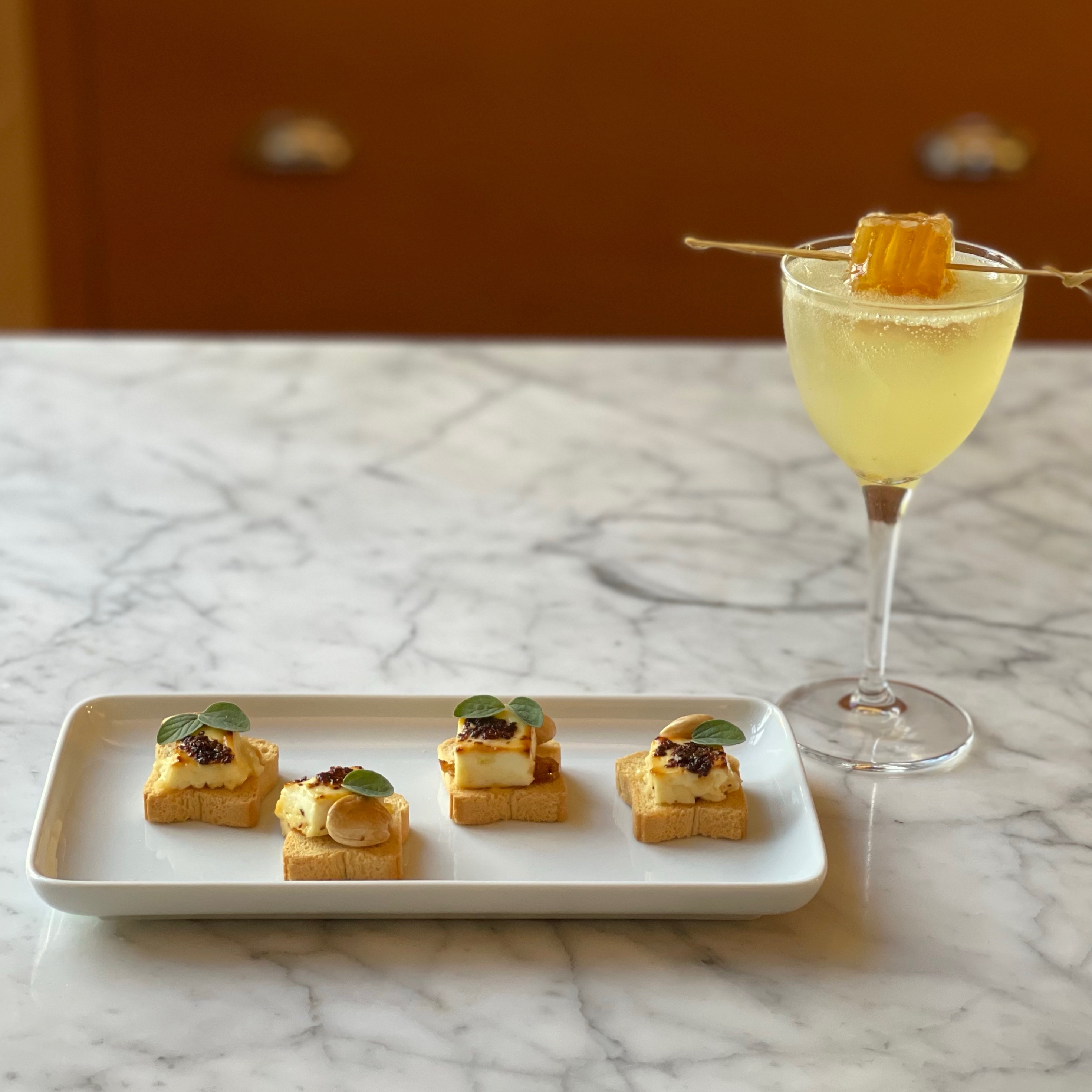 These little toasts are packed with flavor. Sweet caramelized honey, salty feta, warming Aleppo pepper flakes and floral oregano make a winning canapé.