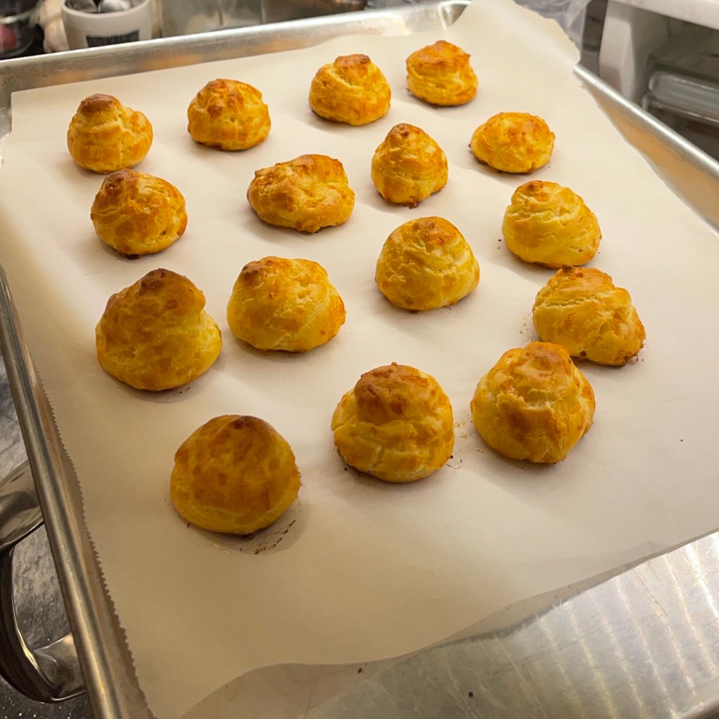 These light, airy, cheesy puffs are perfect for a fancy soirée. Pass these out and pop the bubbly!