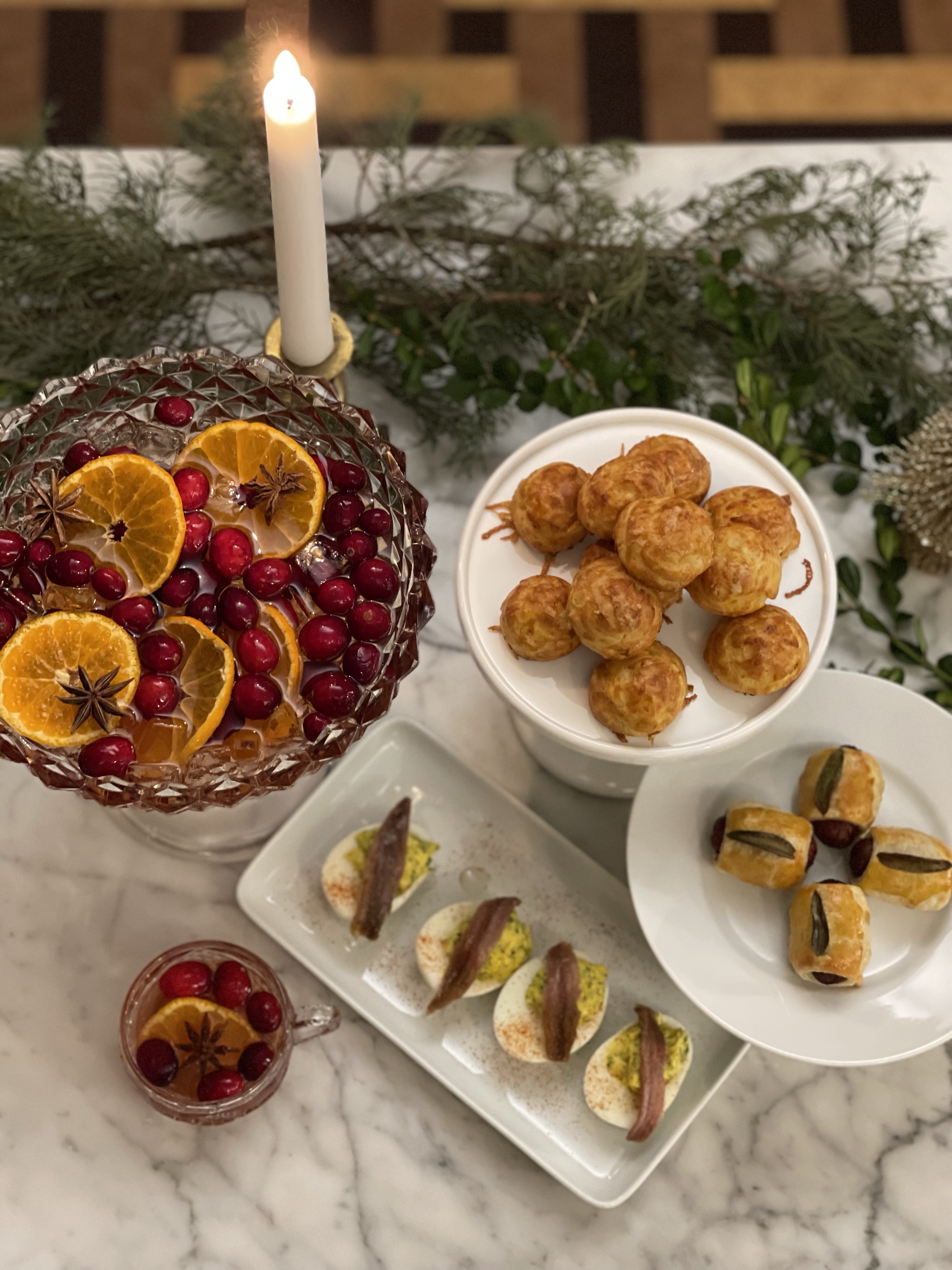 With store bought puff pastry, these little cocktail piggies in a blanket are super simple to make and a perfect accompaniment to a holiday cocktail.